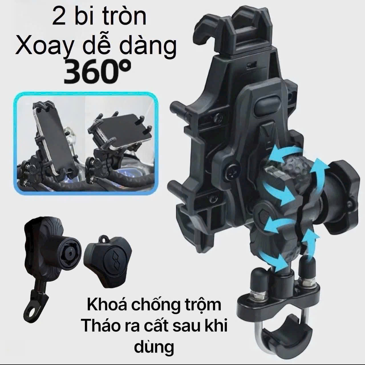 👉Giá đỡ 8 chân chắc chắn, 2 bi xoay dễ điều chỉnh, có khoá chống tháo trộm