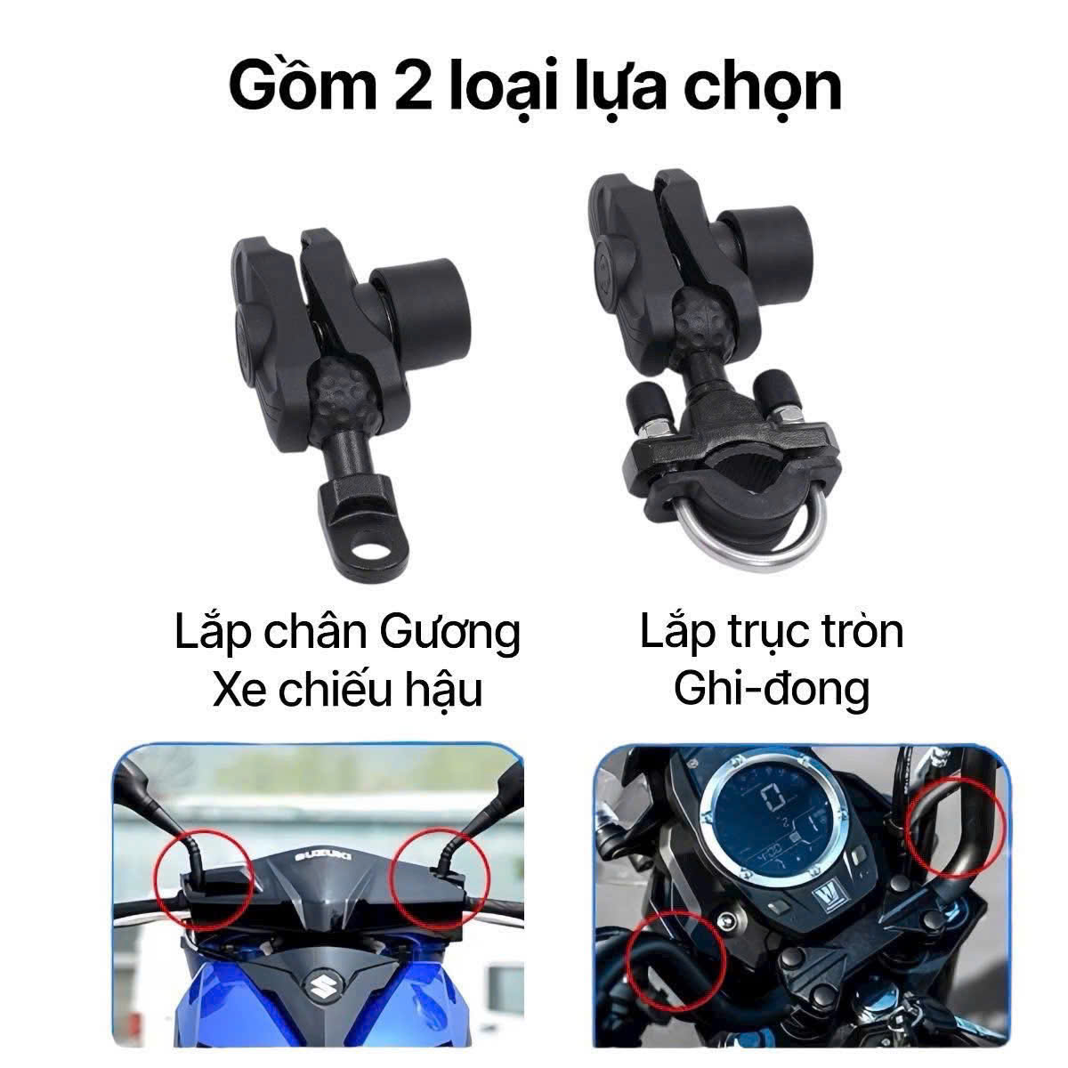 👉2 Loại: Chân Gương xe máy hoặc Chân tròn ghi-đôngh
